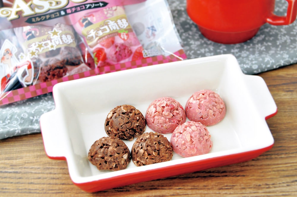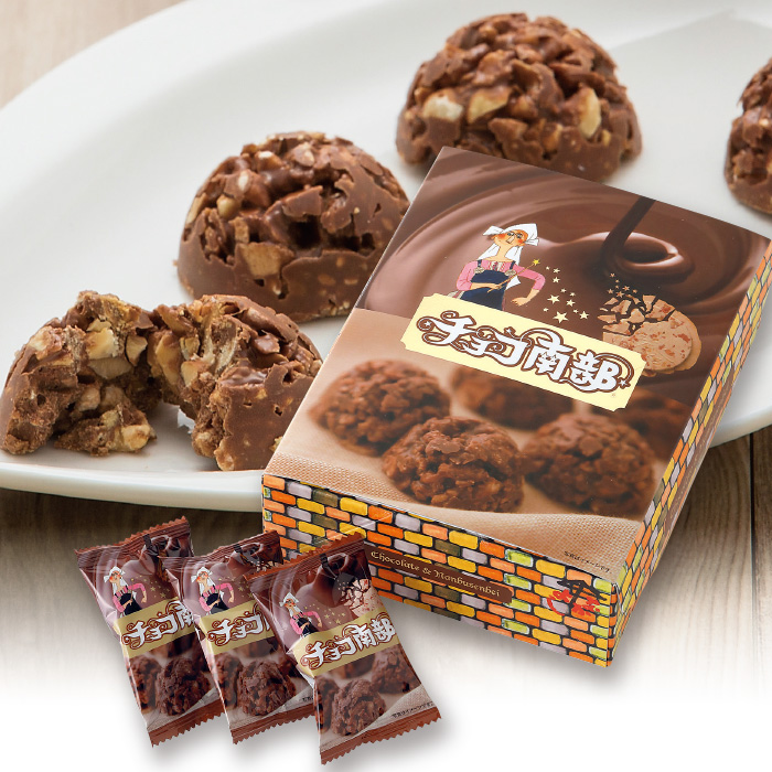 よくあるチョコクランチのように見えますが、コーンフレークやビスケットではなく、砕いた南部せんべいをコーティングしているチョコ菓子です。